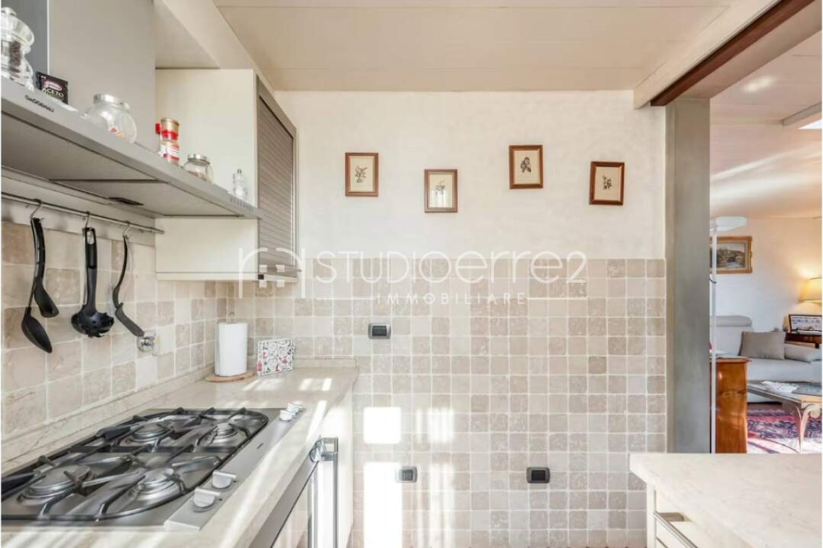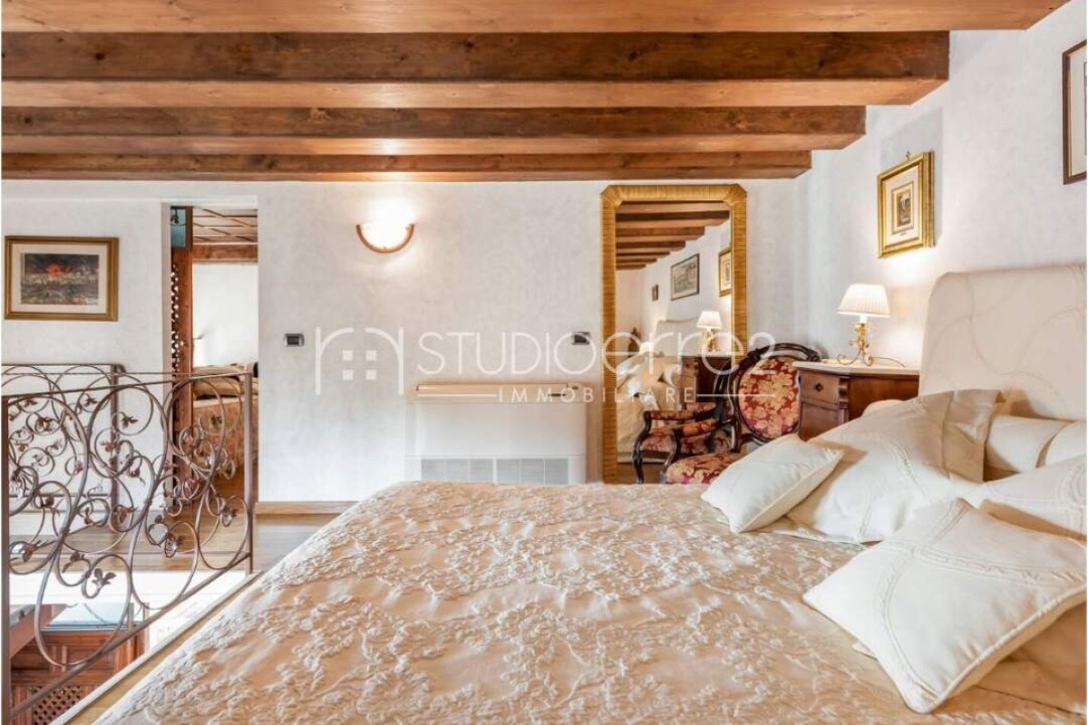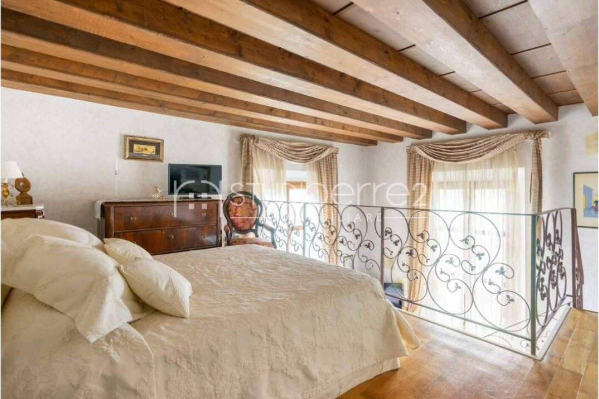 Al piano superiore un soppalco molto ampio e saggiamente suddiviso ospita una camera da letto matrimoniale ed una seconda camera oltre pratico ripostiglio (con possibilità di ricavare un secondo bagno)