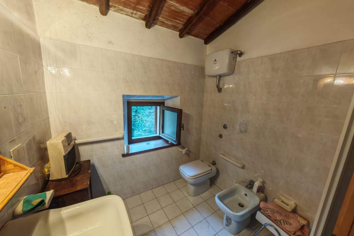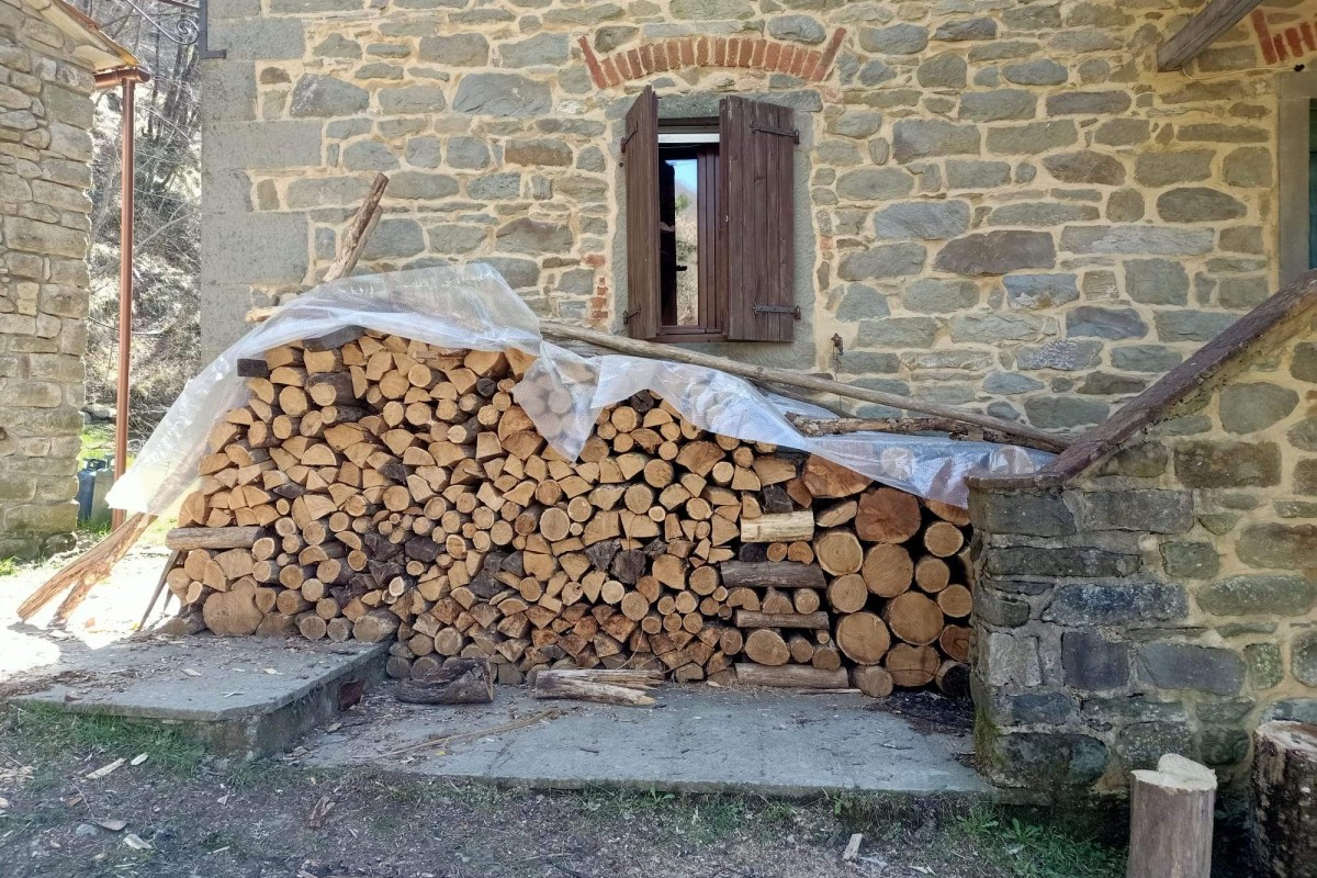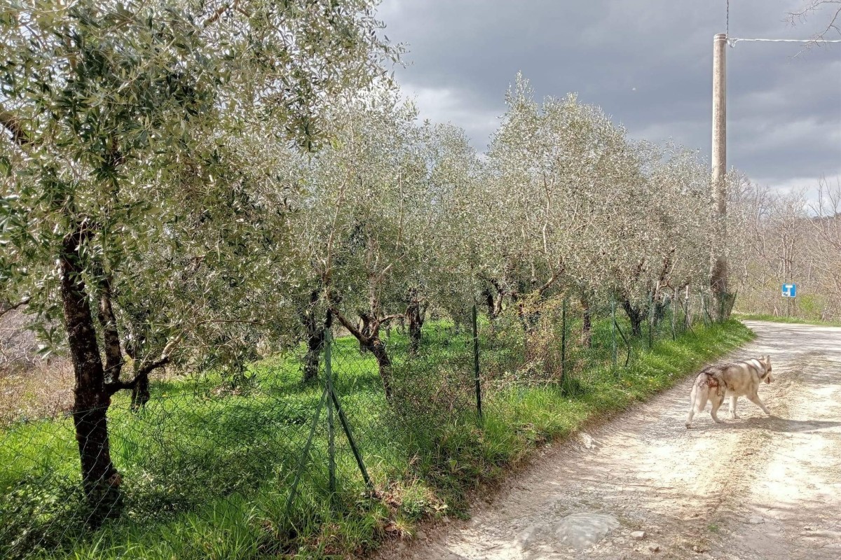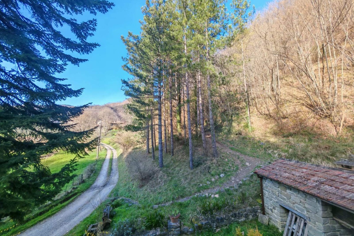 Il terreno si estende per più di 7 ettari tra bosco (carpini ovvero ottima legna da ardere, abeti, castagni, noci), comoda marroneta, oliveta con 60 olivi e una parte seminativa.